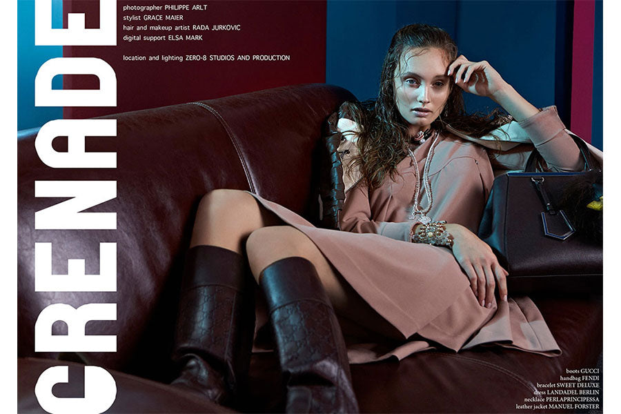 Elena Deger trägt unser Landadel Babydoll Dress - ROSÉ in der aktuellen Ausgabe des NOCTIS MAGAZINE